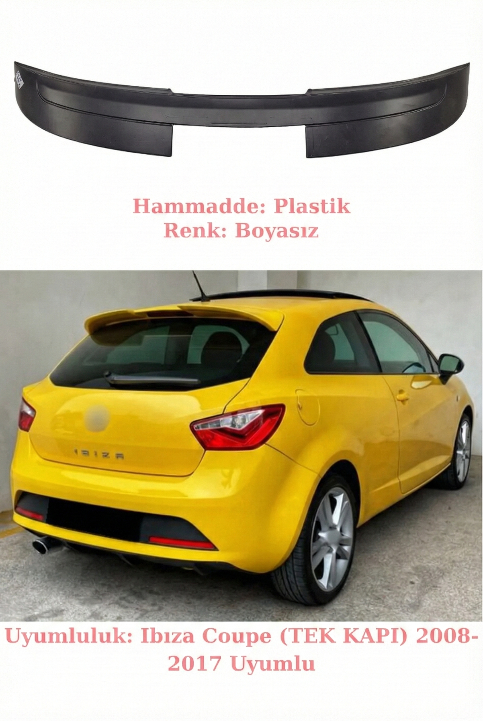 Ibiza 6J Cupra Spoiler modellerimiz, aracınıza o efsanevi ve keskin Cupra karakterini kazandırmak için üretildi. Bu özel Seat Ibiza 6J Spoiler, 2009 ile 2019 yılları arasındaki tüm modellere tam uyum sağlar. Aracınızın arka tasarımına anında daha hırçın ve dinamik bir görünüm katar. Ibiza Cupra plastik spoiler ürünümüz, tavan hattını keskinleştirerek aerodinamik bir duruş sunar. CarArts kalitesiyle sunulan bu parça, modern tasarımıyla tüm bakışları üzerine çeker.